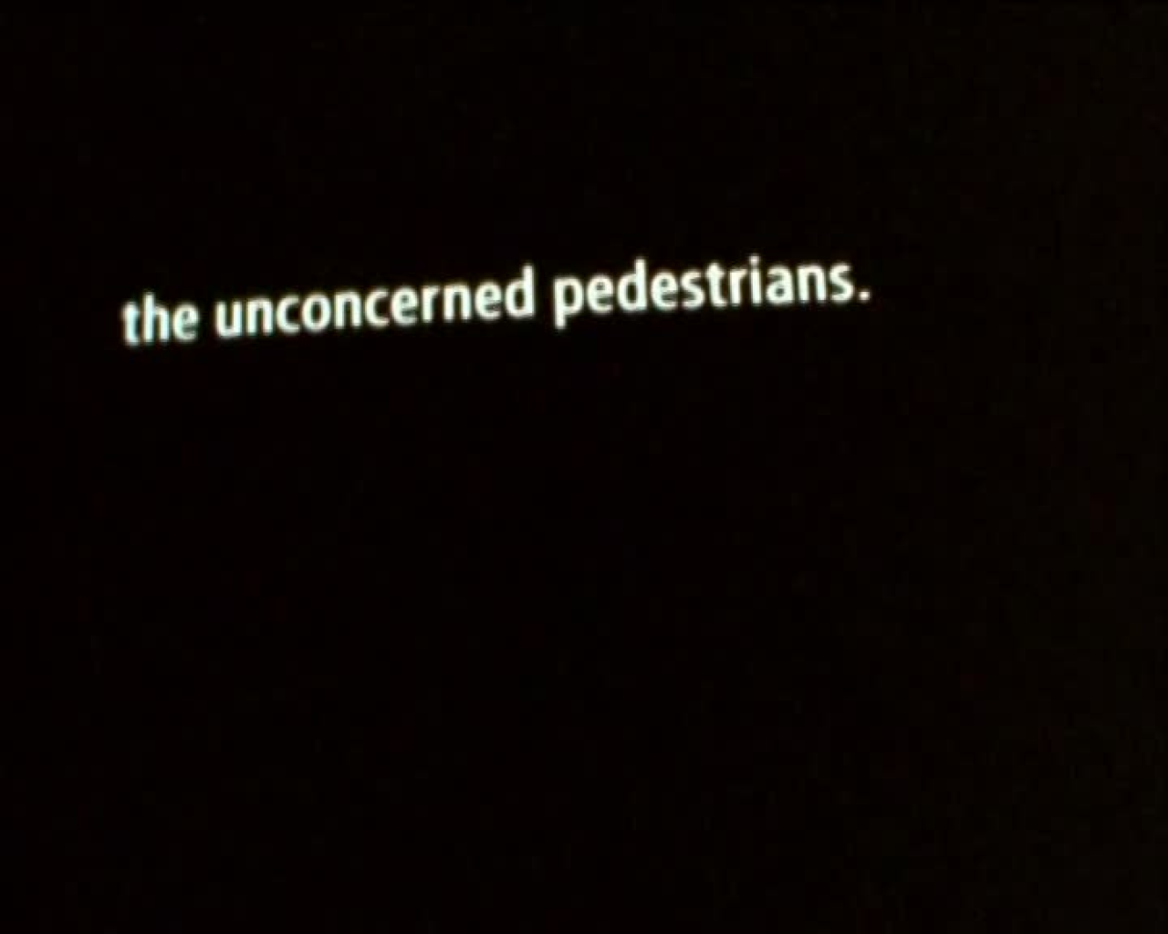 It’s Gonna Happen (2005) was a noir fragment, a conversation planning an abduction/kidnapping. All the cinematic images (except the last, arguably) were conveyed by text on screen, which created an overload of information for the viewer. (Do you read the text or listen to the conversation? You’ll find it difficult to do both.) No doubt, this was the artist’s intention.