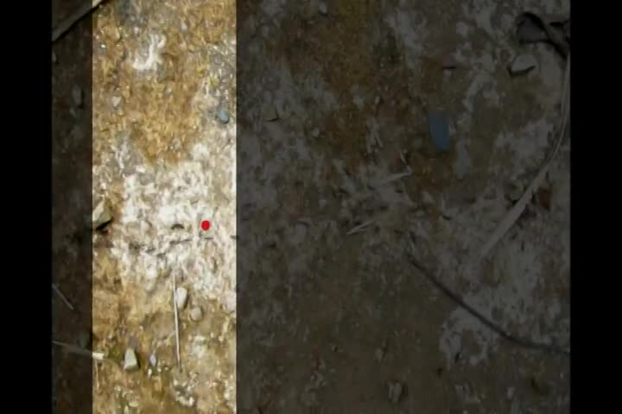 Der digital montierte Punkt wird von den Ameisen scheinbar getragen und durch den beinahe singenden, enthusiastischen Audiokommentar entsteht ein Wettbewerb der Ameisen bar jeden Sinnes.