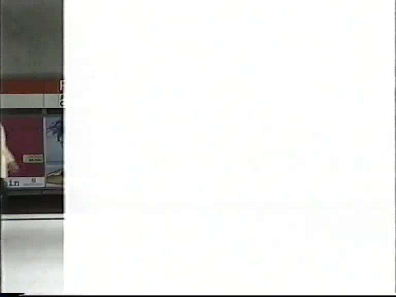 Zu sehen ist eine Aufnahme in einer Metrostation und gleichzeitig ein weißes Rechteck, welches sich kontinuierlich von links nach rechts und umgekehrt bewegt. Sichtbar sind sich ständig verändernde Ausschnitte, es kommt zu verschiedenen Bewegungen zur selben Zeit.